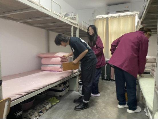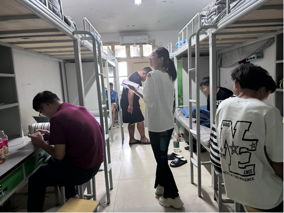 宿舍内务整理完毕后,永利集团3044欢迎你学工办主任郭娇娇与23级辅导员齐聚4号宿舍楼,开展了一次全面细致的内务检查活动。此次内务检查主要针对宿舍环境、床铺整理、物品摆放等方面,旨在培养新生良好的宿舍卫生和秩序意识。