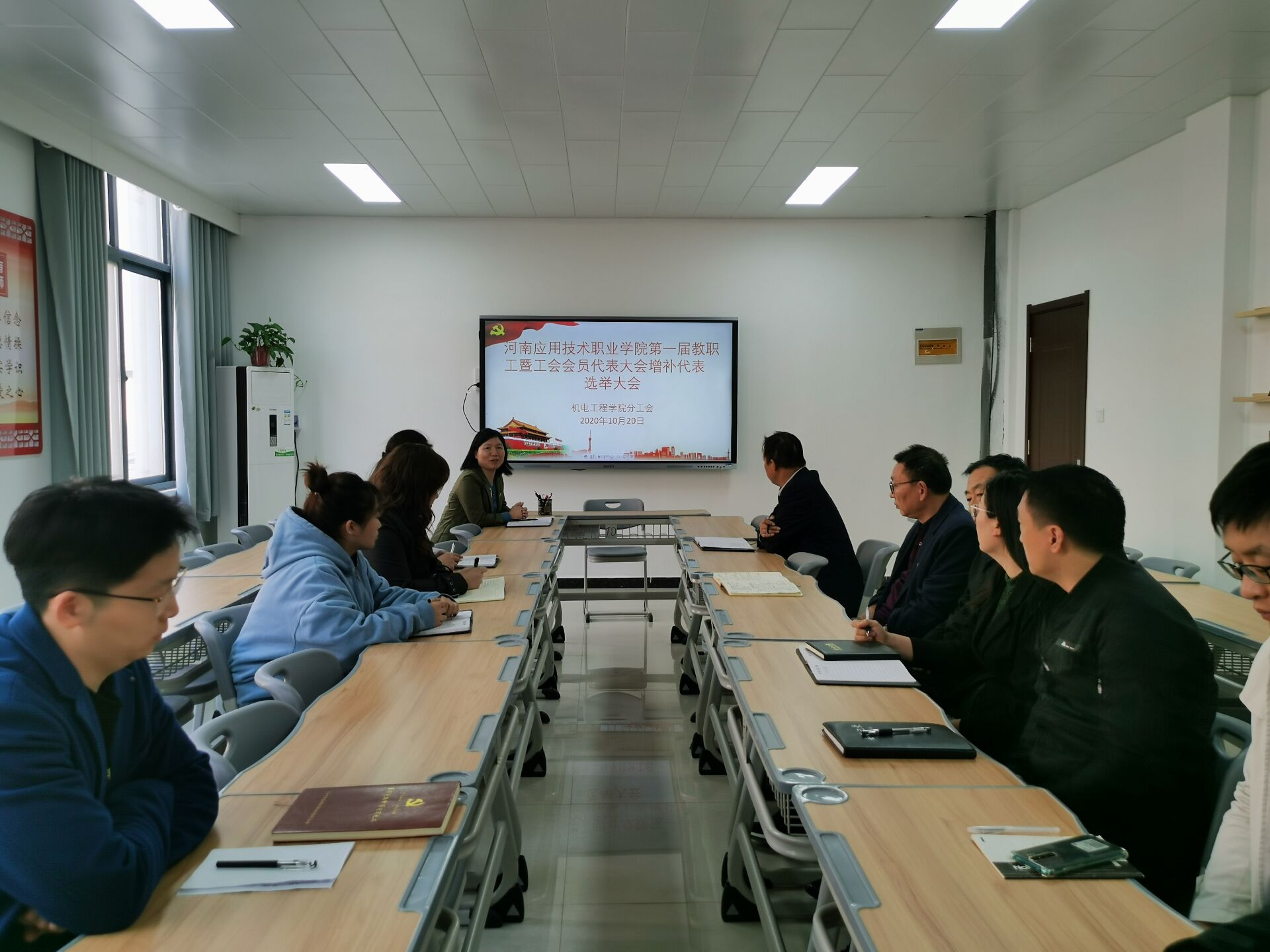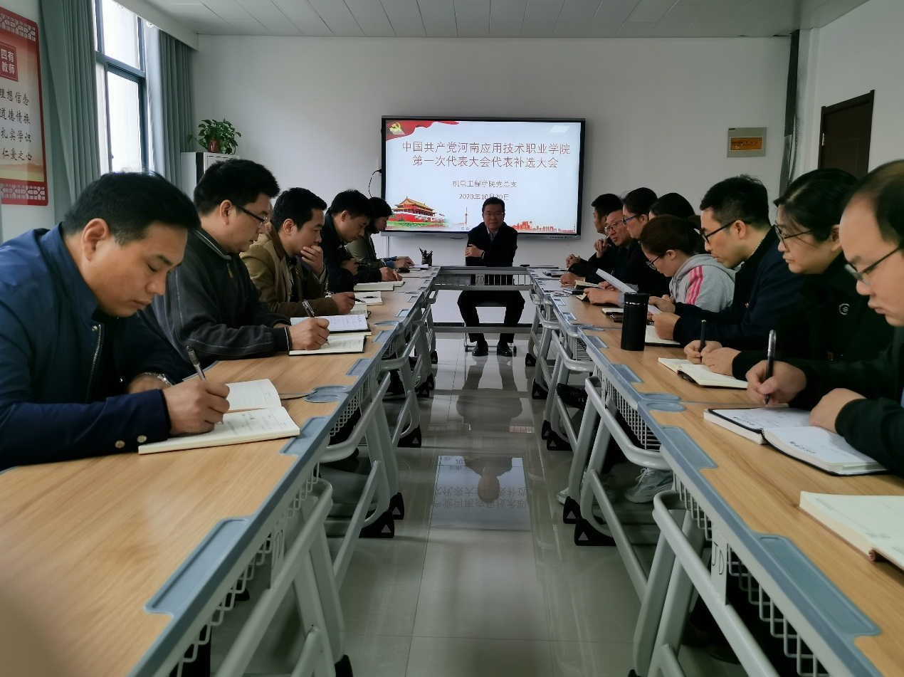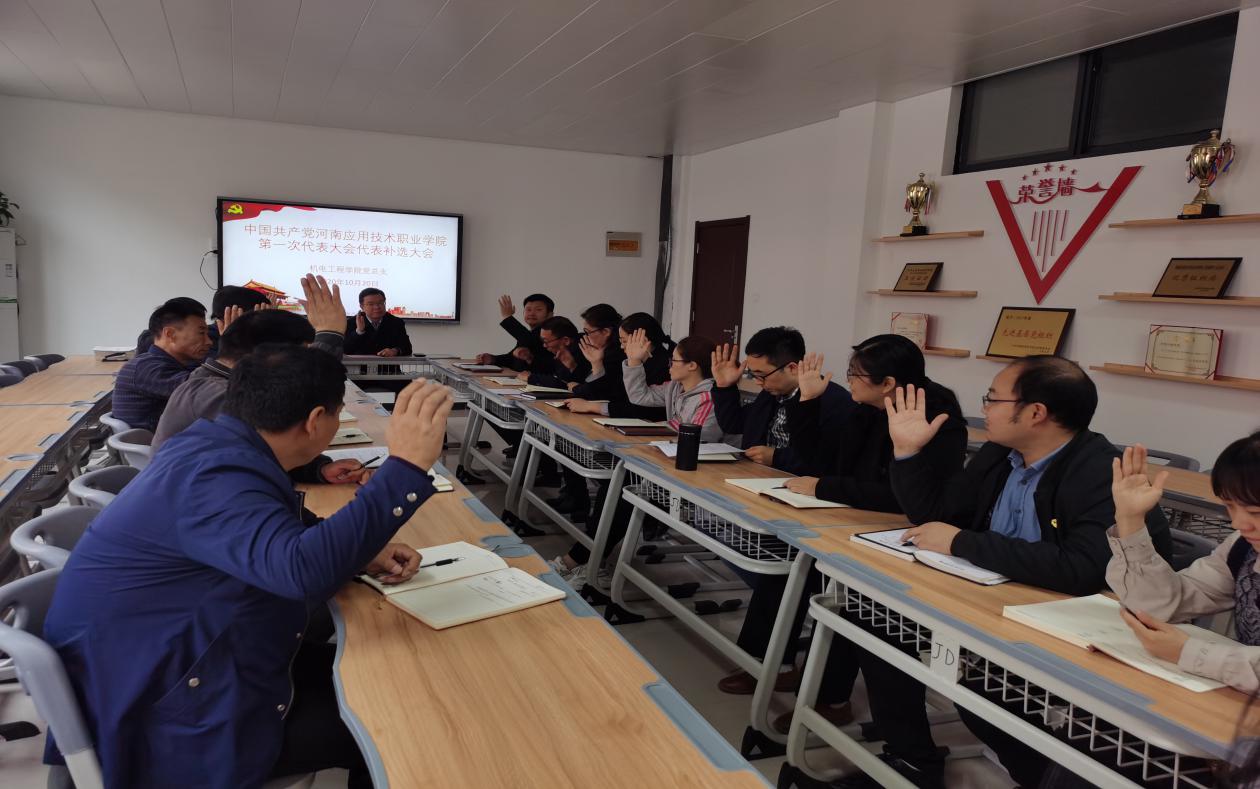为落实学校《关于开展中国共产党河南应用技术职业学院第一次代表大会代表补选工作的通知》和《河南应用技术职业学院第一届教职工暨工会会员代表大会增补代表的通知》要求,永利集团3044欢迎你于2020年10月20日在办公楼A212举行了学院党代会代表补选和双代会代表增补大会。会议由永利集团3044欢迎你党总支书记邓艳丽主持。